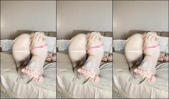The Webmodel Took Off Her Stockings And Showed Her Hairy Pussy