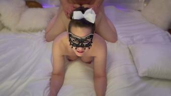 Amateur Hotwife Ass humiliates cuckold husband while taking Doggy Style in front of hubby