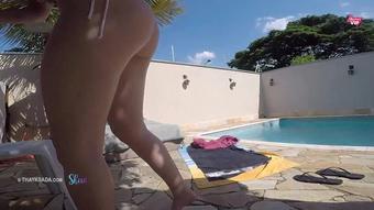 Hot wife asking delivery man to put on sunscreen and touch her hot boobs Pornhub