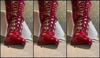 Miss Harriet Nicknamed Redtoes Onlyfans Slinky Black Dress Red Pvc Boots 10
