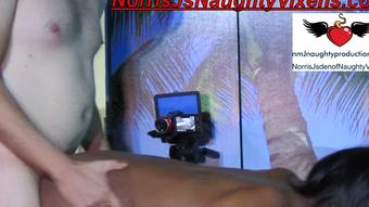 "nmjnaughtyvixens" adulttheater, blackandwhite, blowjob, cowgirl, doggystyle Bella Star trys my Gloryhole trainer manyvids