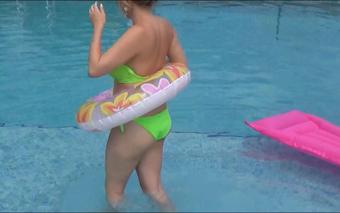 Penny Lee Clothed Dip In The Pool