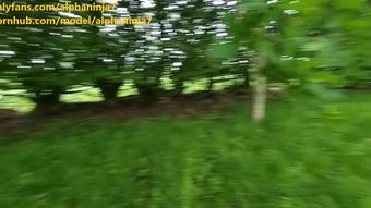 Девушка В Парке У Костра Раздевается И Играет С Сосками