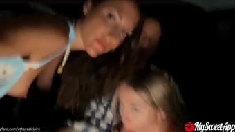 MySweetApple Double Blowjob in the Car - Blonde and Brunette Suck a Big Cock AfterParty PornHub