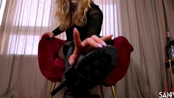 Lucy Sanivy dominates and instructs her slave in the art of footplay