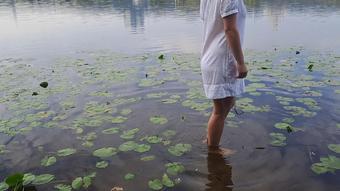 Tender Girl Nymph Walks In A Wet Transparent Shirt