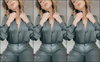 SashaBull is a naughty MILF in a satin-clad shirt - watch her play with her nipples