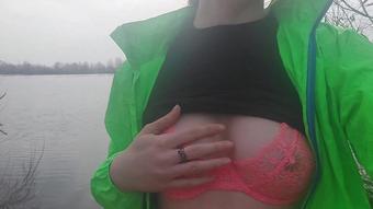Девушка Топлесс Гуляет Возле Реки