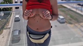 Молодая Женщина Светит Сиськами В Центре Города На Оживленной Улице