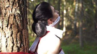 Bondage, Bondage Rope, Forest, Outdoors, Rope Bondage, SFW the-girl-is-tied-to-a-tree-in-the-forest ManyVids